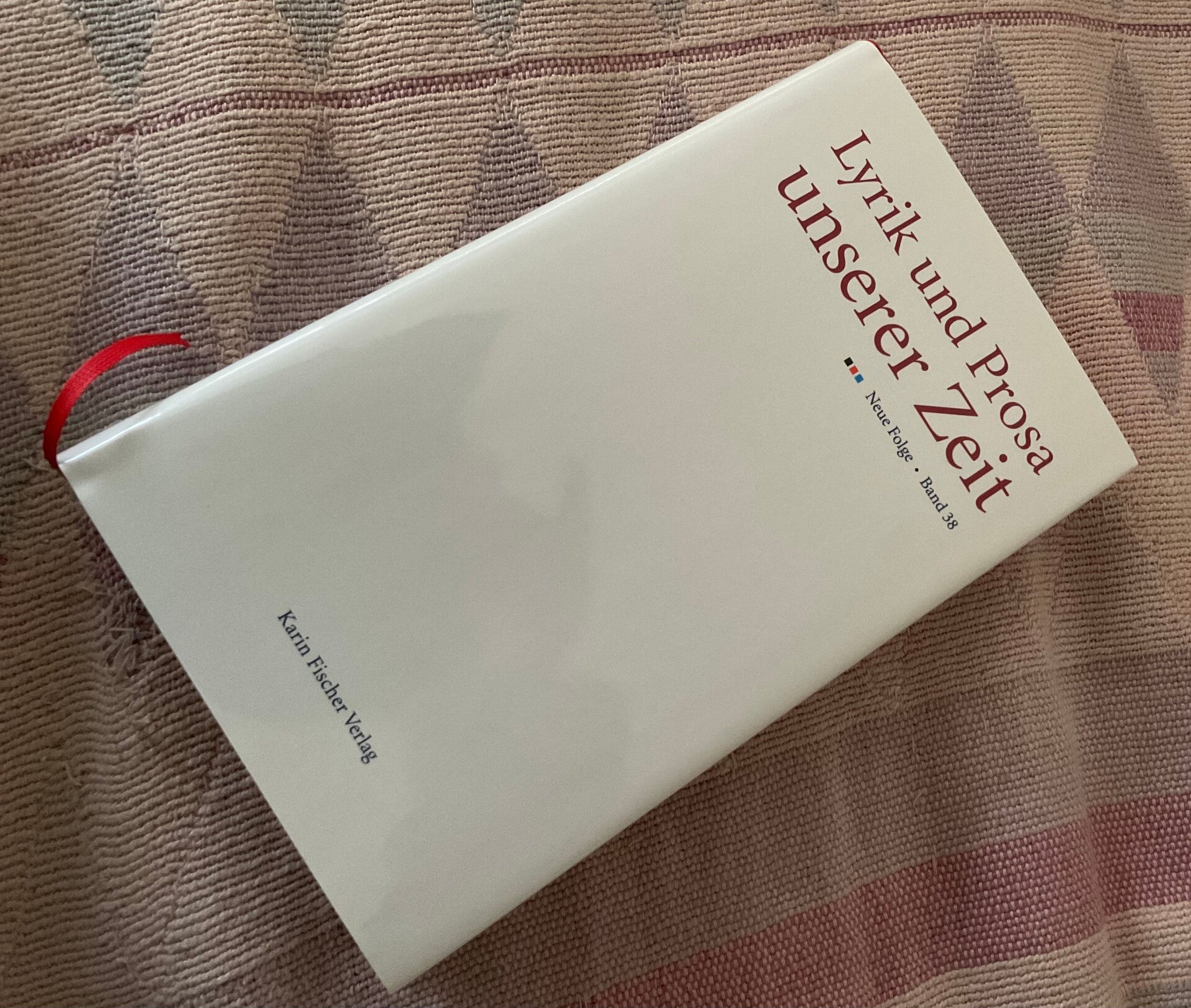 Die Anthologie "Lyrik und Prosa unserer Zeit", Neue Folge, Band 38 erscheint. Darin enthalten sind drei meiner Gedichte meines ersten Gedichtbands. Die Anthologie erscheint beim Karin Fischer Verlag/DLV.
