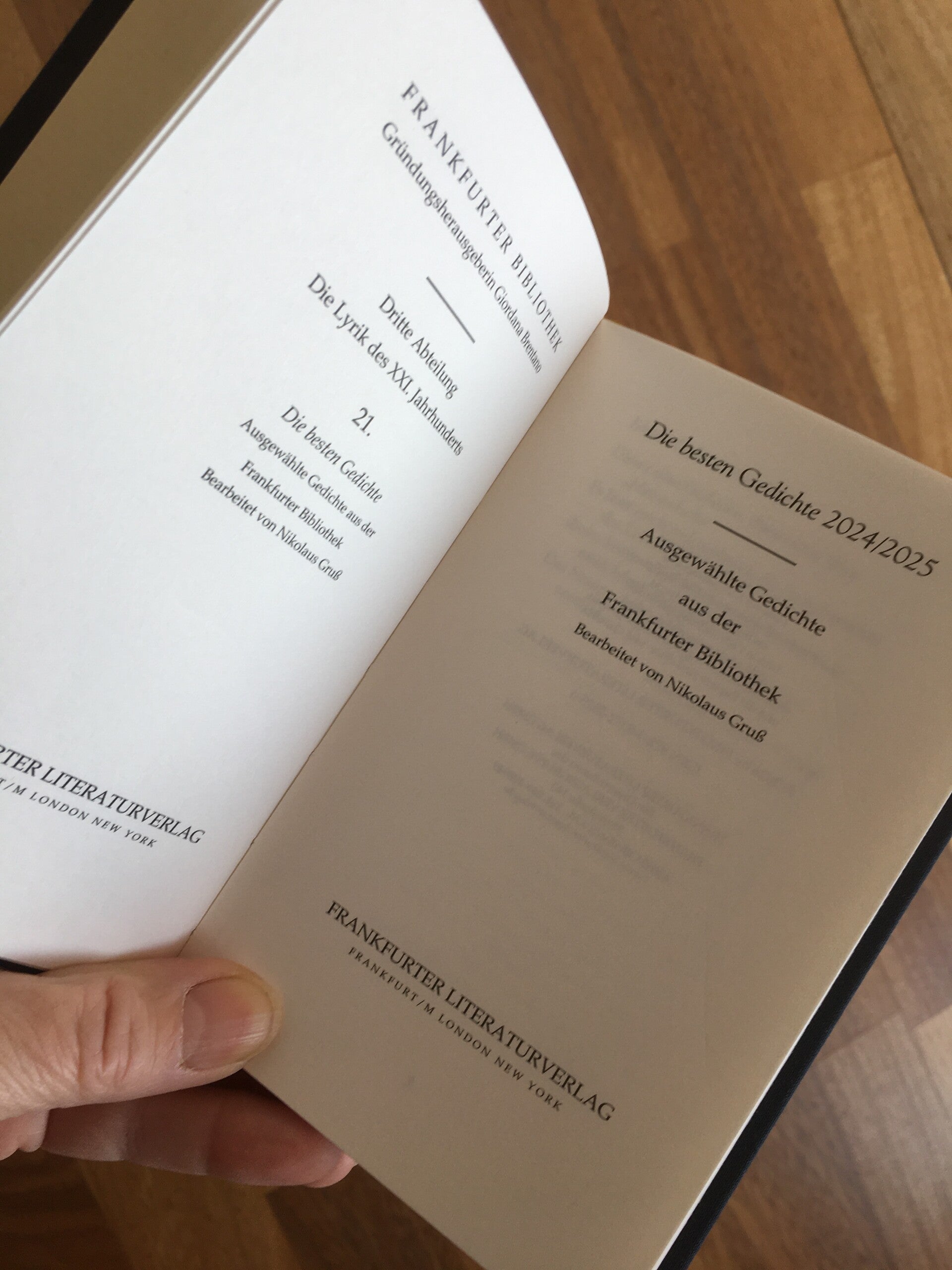 Mein Gedicht "Neujahrs-Erkenntnis" wird in die klassische Edition der Frankfurter Bibliothek aufgenommen.
